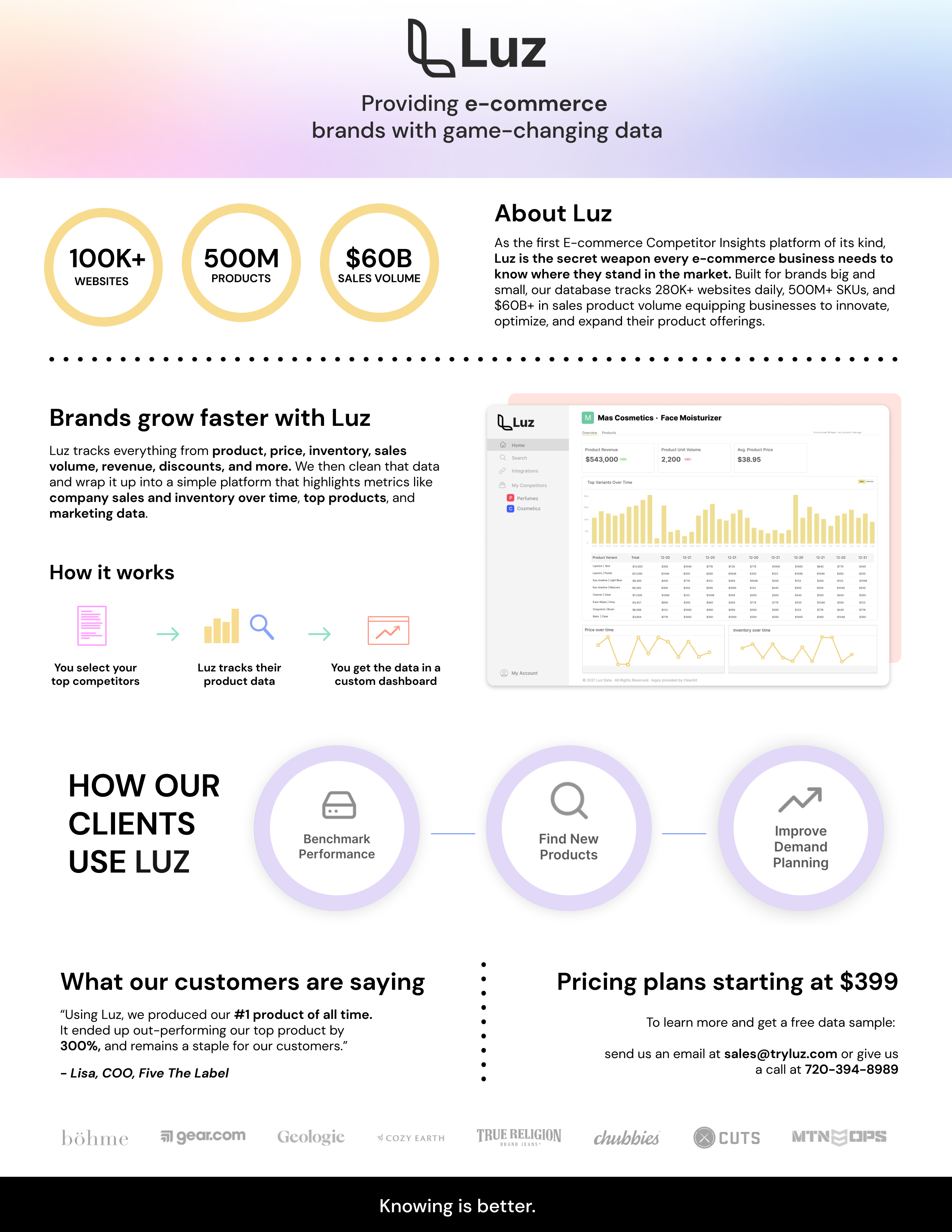 Particl is the new era of market research for the world's leading brands. It's never been easier to access real-time market data, track competitors, optimize pricing, and develop products. Particl is on a mission to help brands skyrocket growth and is transforming e-commerce businesses all over the country.